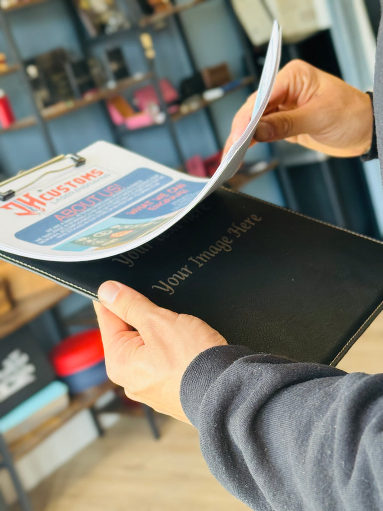 Engraved Black and Gold Leather Clipboard