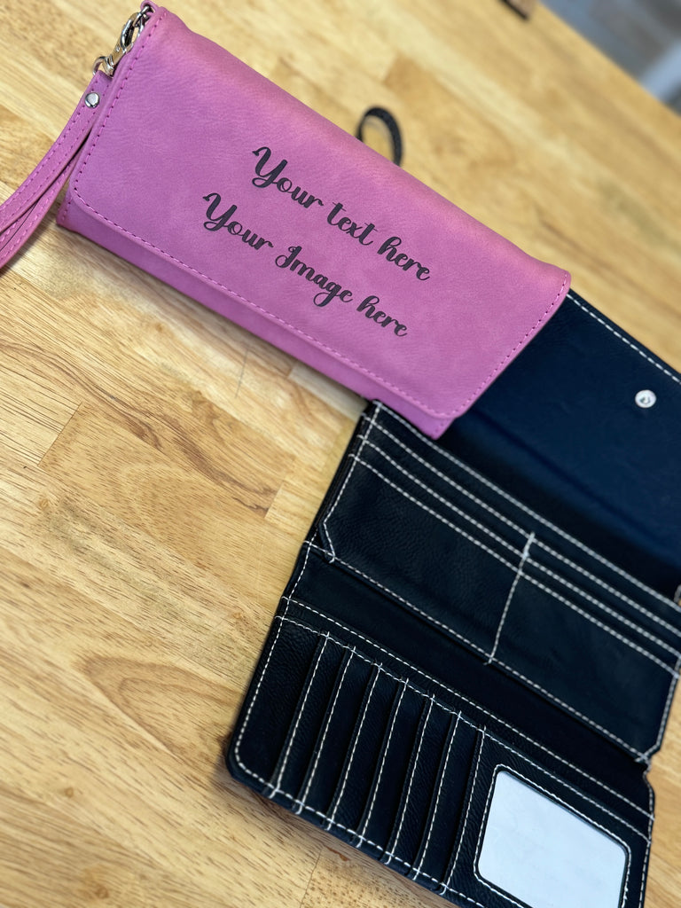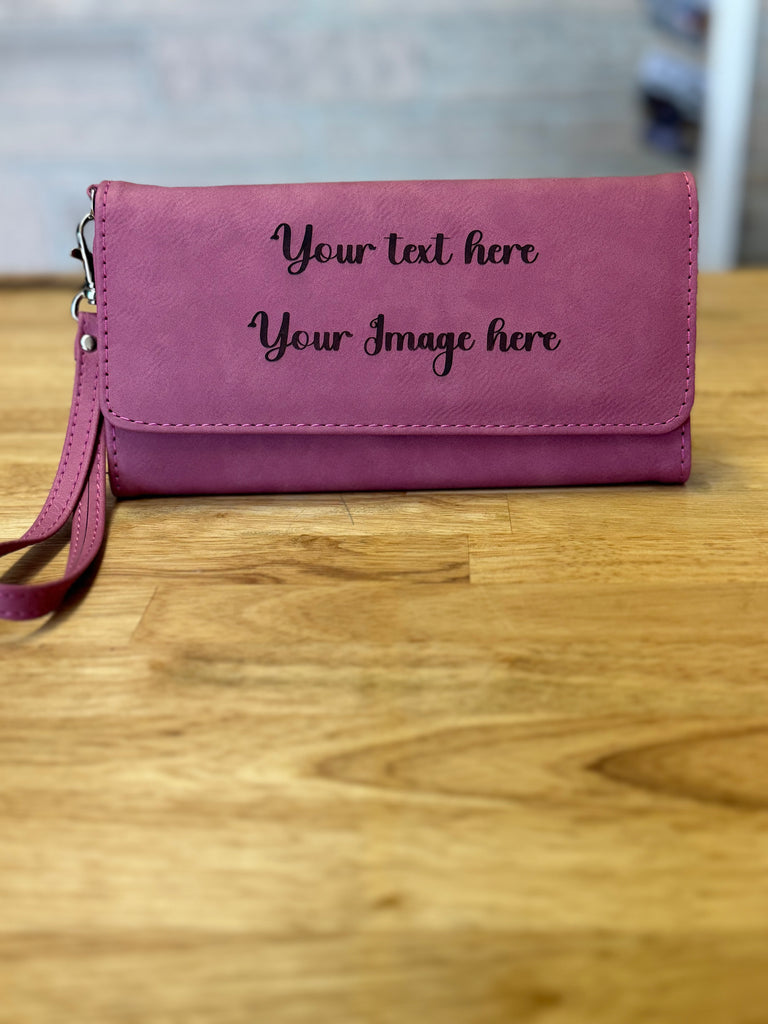 Custom engraved 7 1/2" x 4" Leatherette Wallet with Strap
