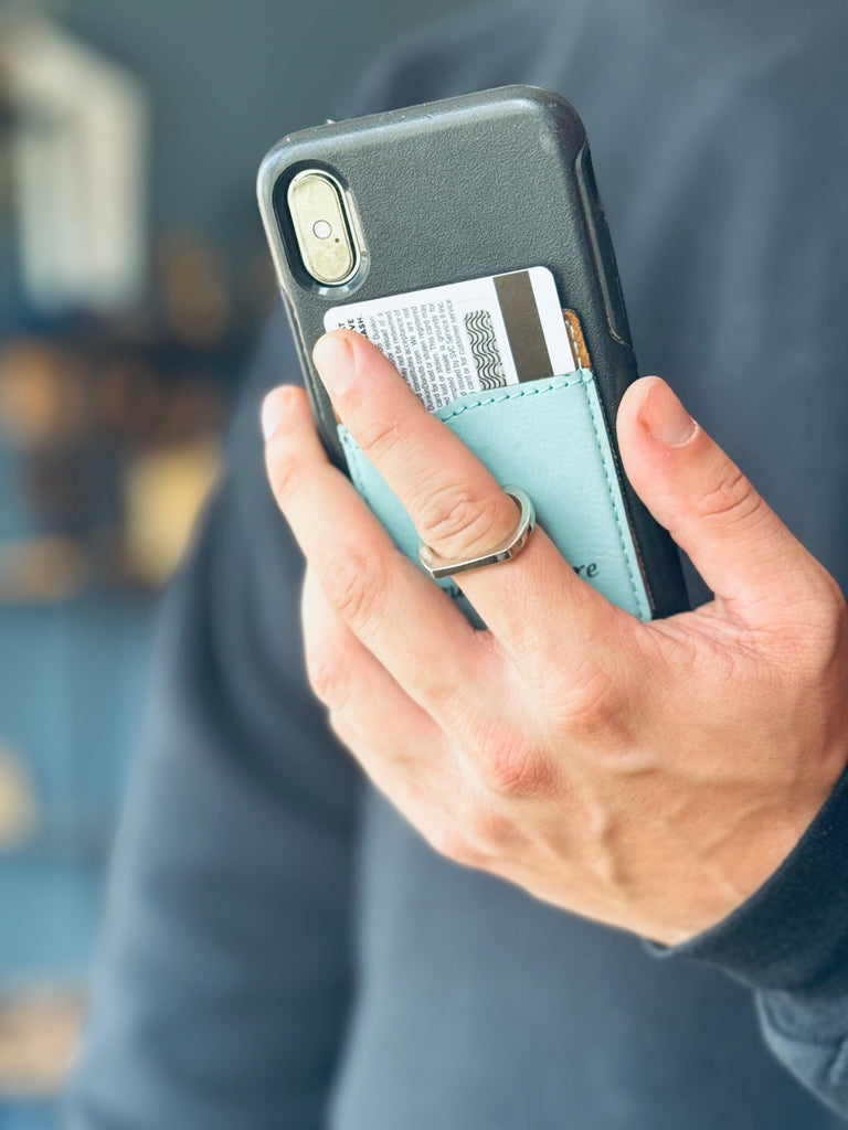 3M adhesive on the back, simply peel and stick to the back of your phone.
