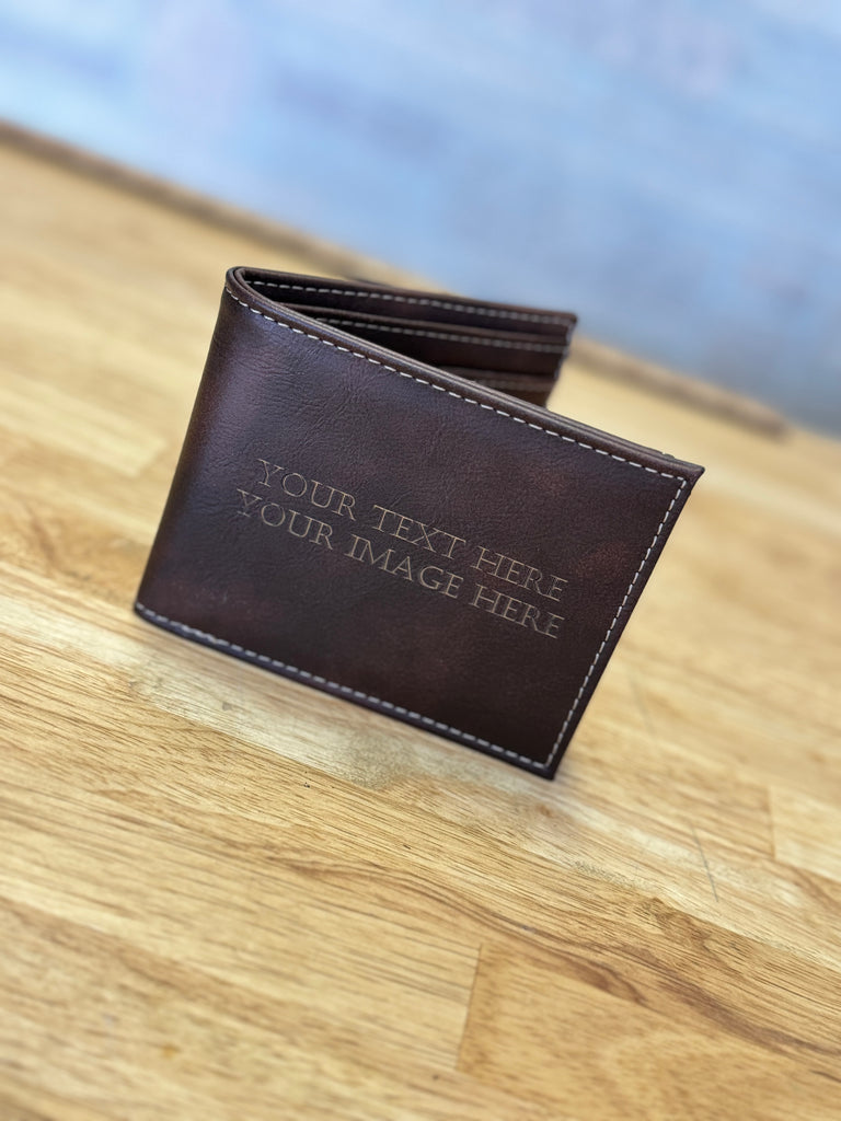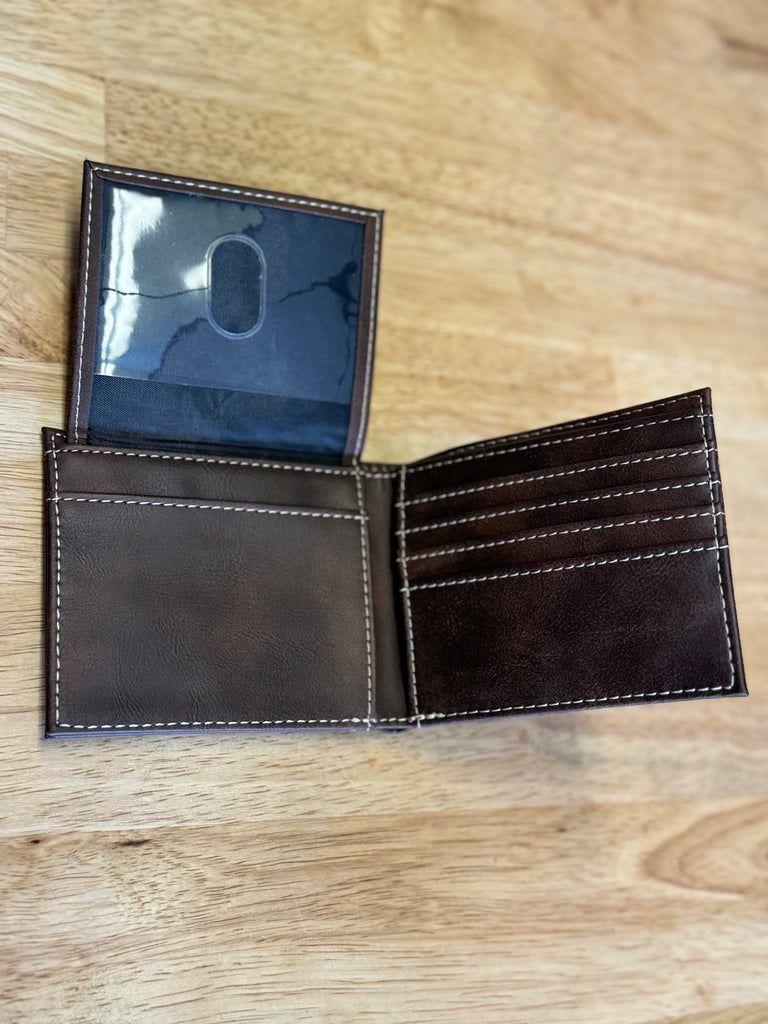 This personalized Leather wallet is the perfect size to fit all your cards and cash with plenty of room inside. Perfect for the special someone in your life!